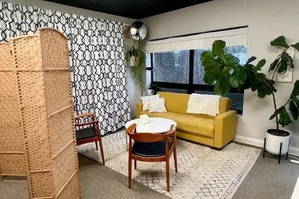 If you need a private space for mediations, interviews, or media creation, our second floor Team Loft is IT! Enjoy complete privacy in a 230 sq.ft creative workspace that was once an art gallery.