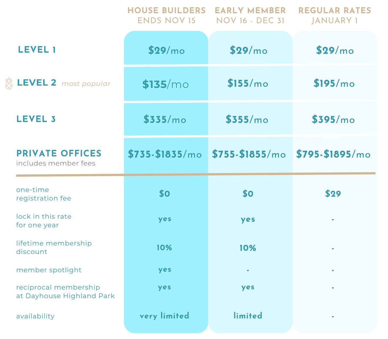 Founding Members enjoy special rates, early access to offices and amenities, and most importantly — a role in shaping our community from the start. Secure your spot today!